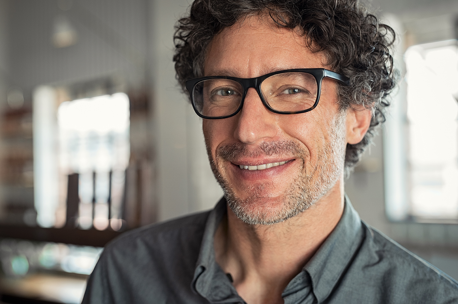 Portrait of mature businessman wearing glasses. Closeup face of smiling proud business man wearing eyeglasses and looking at camera. Satisfied senior man wearing spectacles indoor.